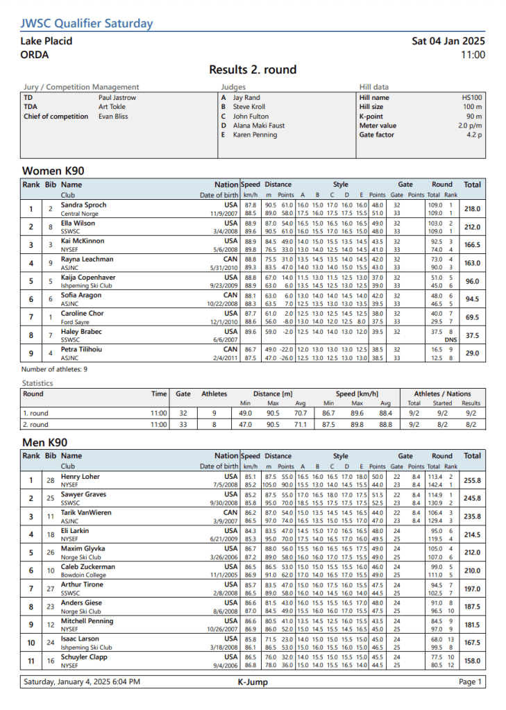 Junior World Championships Qualifier January 4, 2025January 5, 2025easternskijumpingLeave a Comment on Junior World Championships Qualifier January 4, 2025 HS100 Jumping Related