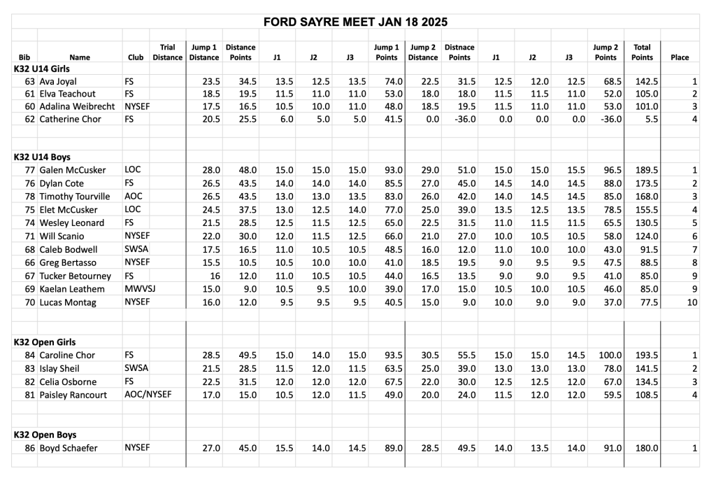 Ford Sayre K32 Results 1/18/25 January 18, 2025January 20, 2025easternskijumpingLeave a Comment on Ford Sayre K32 Results 1/18/25 Related