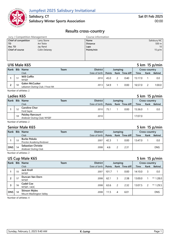 2/1/25 Salisbury Invitational Cross Country February 1, 2025February 3, 2025easternskijumpingLeave a Comment on 2/1/25 Salisbury Invitational Cross Country Related