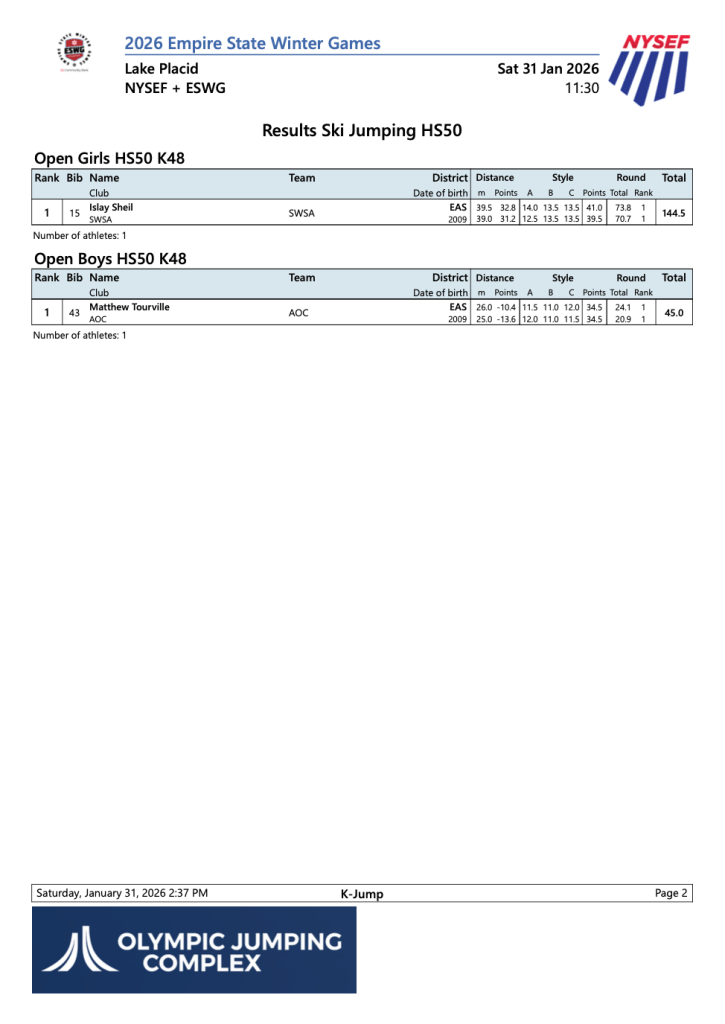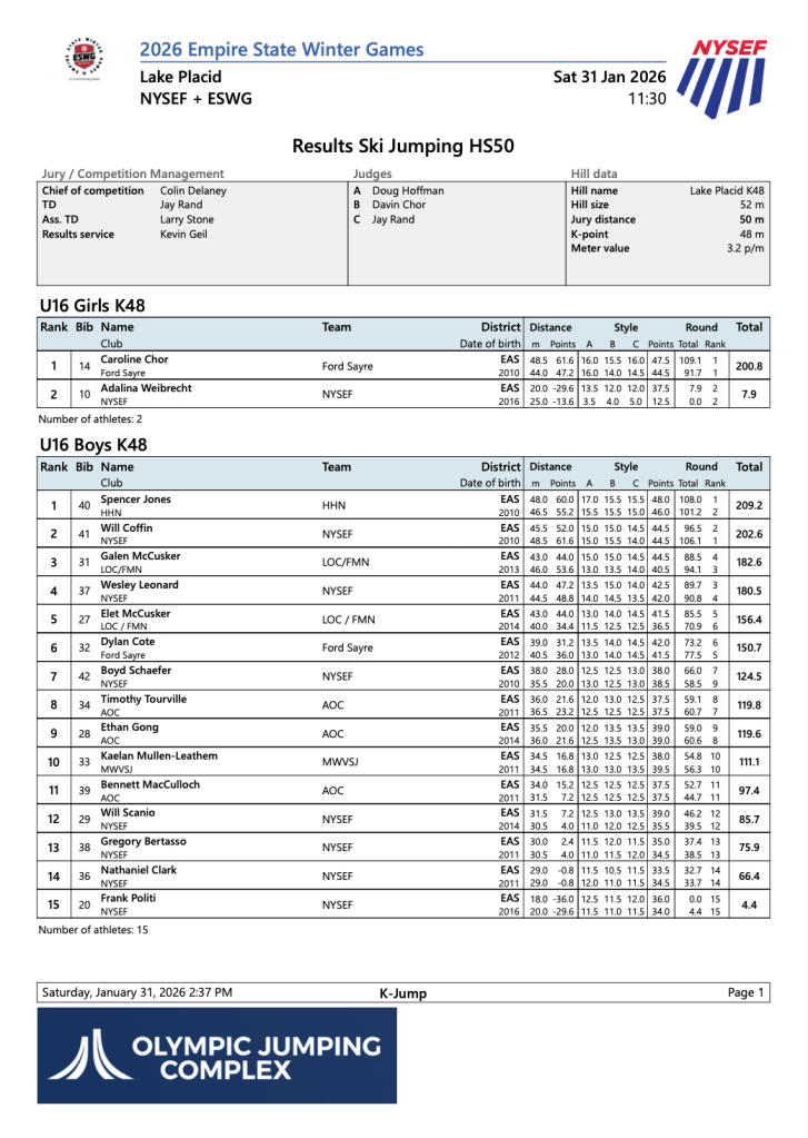 ESWG & NYSEF Results 1/31/26 February 1, 2026easternskijumpingLeave a Comment on ESWG & NYSEF Results 1/31/26 Related