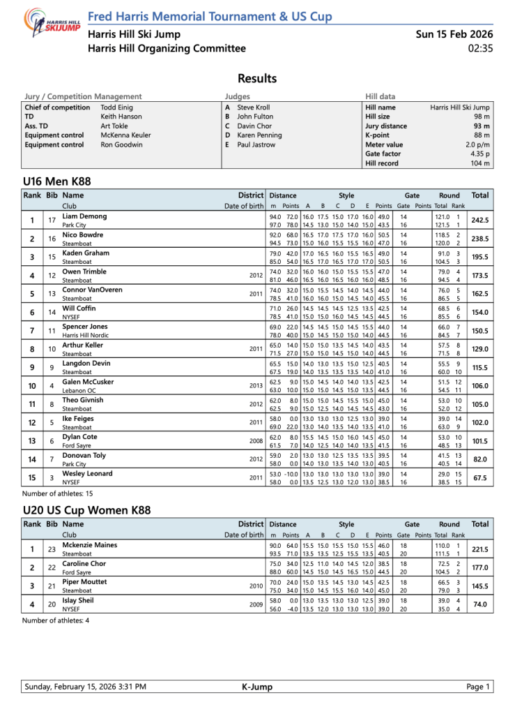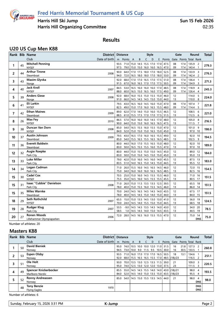 Fred Harris Memorial Tournament 2/15/26 February 21, 2026easternskijumpingLeave a Comment on Fred Harris Memorial Tournament 2/15/26 Related