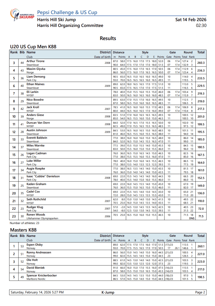 Harris Hill Pepsi Challenge 2/14/26 February 21, 2026easternskijumpingLeave a Comment on Harris Hill Pepsi Challenge 2/14/26 Related
