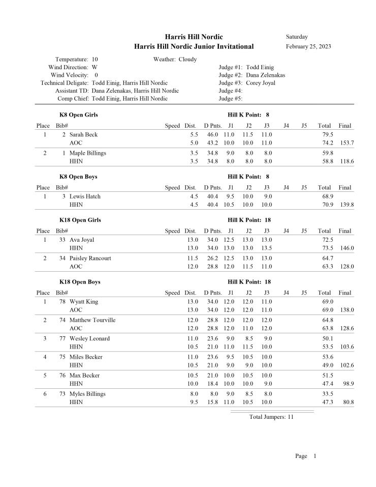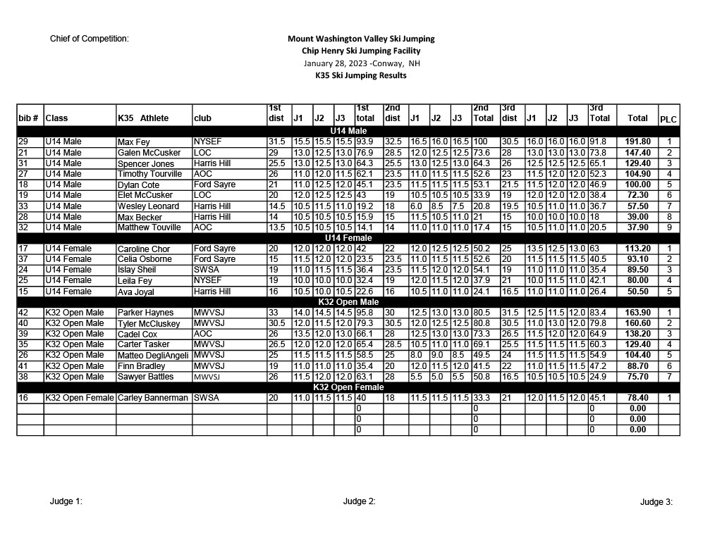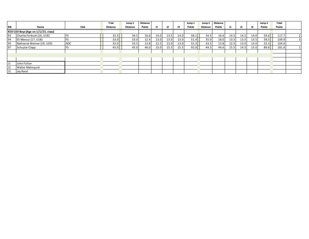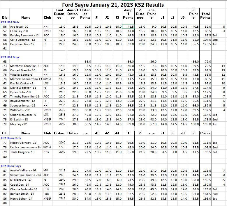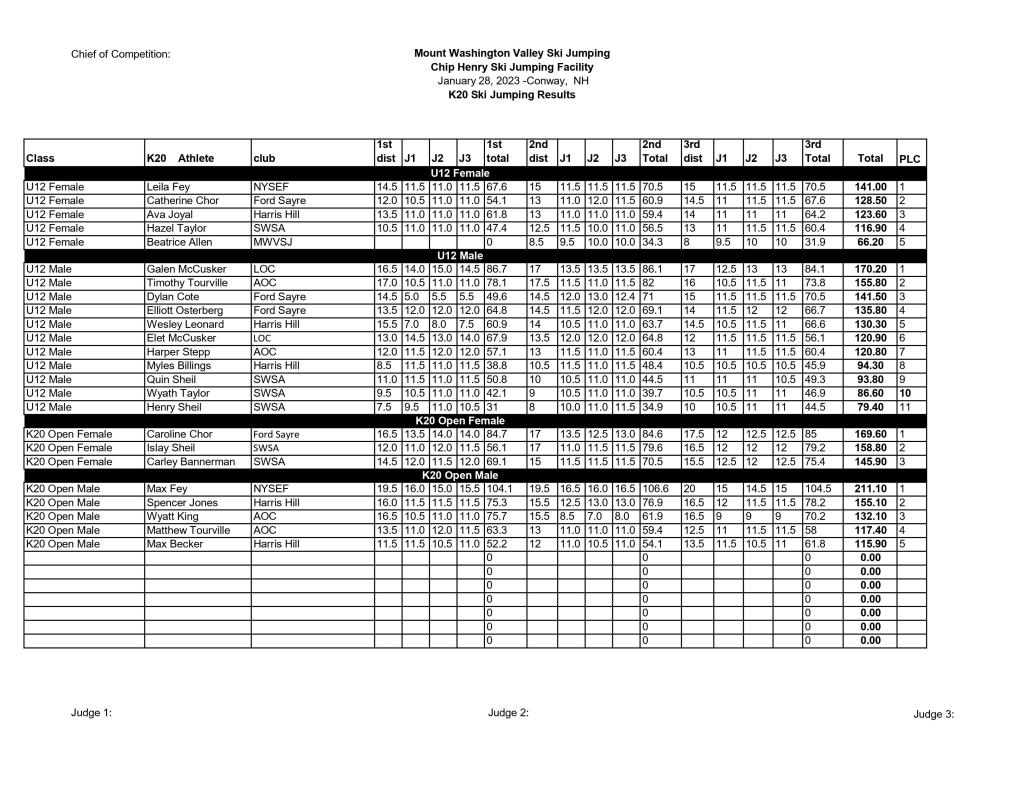 January 23, 2023 Ski Jumping K12 and K50 Jr. Qualifier Competition