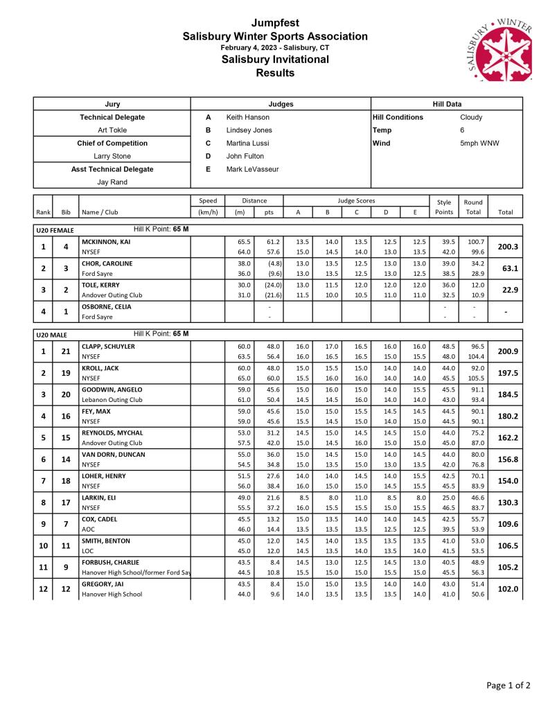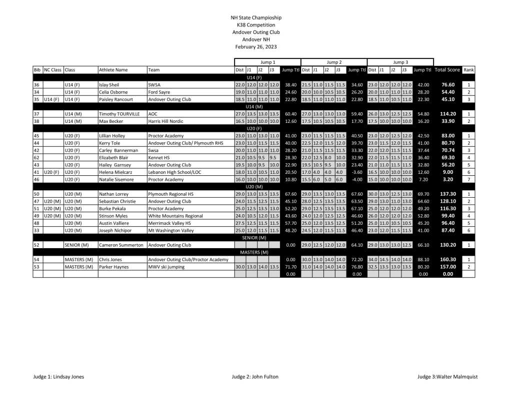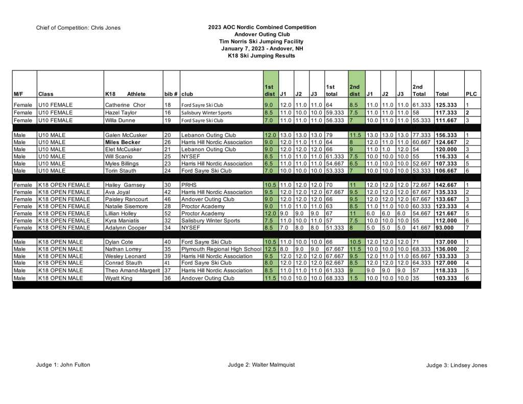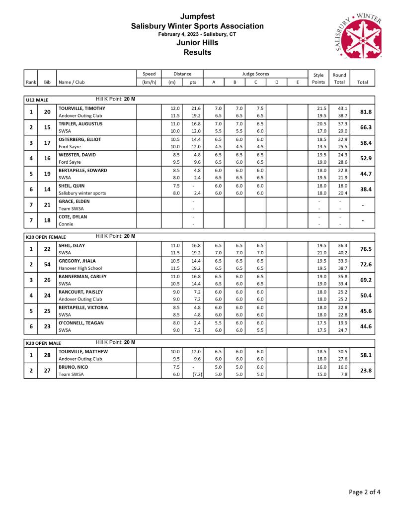 January 23, 2023 Ski Jumping K12 and K50 Jr. Qualifier Competition